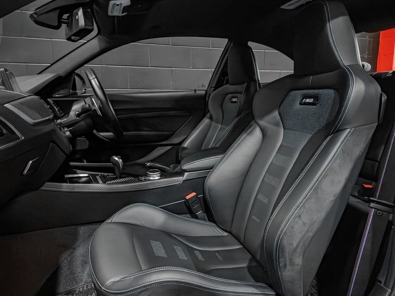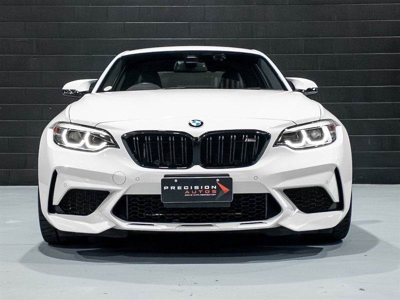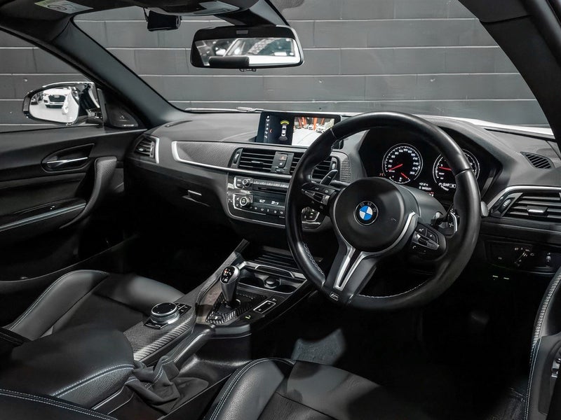 One of the last true drivers cars. Our BMW M2 Competition Package is presented in the timeless Alpine White with Black full leather sport interior combo. The talking point with this M2 is its S55 twin turbocharged engine producing 302Kw/405Hp and 550NM of Torque, a full 30KW and 85NM more than the standard M2! all power is delivered by an ultra quick shifting 7 speed dual clutch transmission. This one also has features including Carbon fiber trim, Comfort access, Reverse camera and Harmon/Kardon premium audio system.