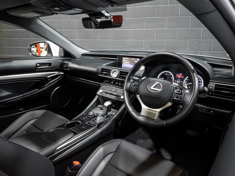 This Lexus RC350 is the perfect blend of sharp Sports car looks and handling with effortless Luxury. Powered by the highly praised 2GR-FSE 3.5 liter V6 it produces 233KW and 378NM of torque which is delivered by a smooth 8 speed transmission. Features for this particular example include Sunroof, A full leather interior with heated seats, Heated steering wheel, Rear diffuser, Bluetooth, Mark & Levinson Premium sound system and a set of RAYS alloy wheels.