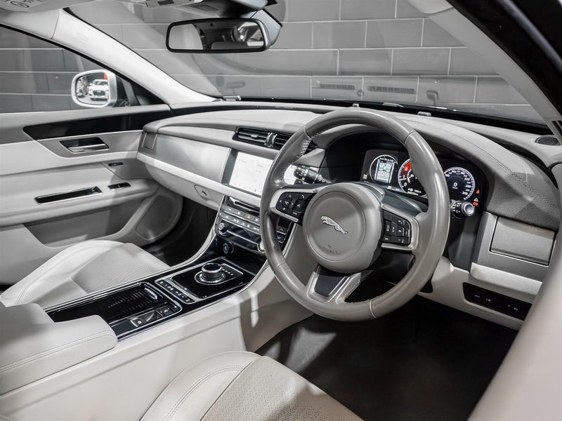 Check out this luxury executive Wagon! This 2019 Jaguar XF is stands out from the pack presented in Santorini black with full Ivory leather interior. Features for this example include Radar cruise control, Digital Dash, Reverse camera, Heated seats, Lane assist, Keyless entry and Touch screen interface. Power comes courtesy of a punchy 2.0 Turbocharged 4 cylinder engine producing 184Kw (250PS) and 365Nm of Torque all delivered through a smooth 8 speed Automatic gearbox.