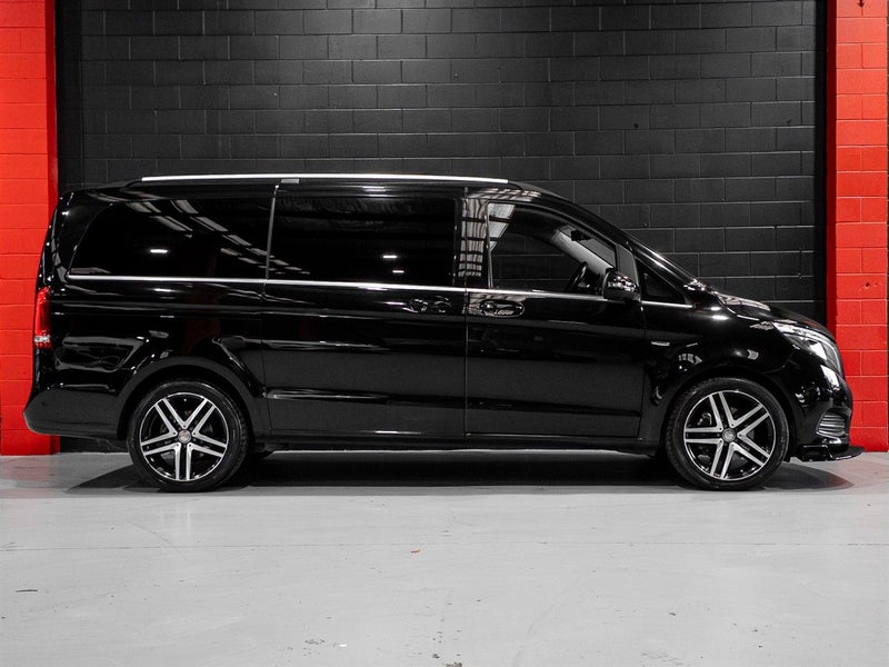 Mercedes are second to none when it comes to comfortable, luxurious and versatile vans and this V220d ticks all the boxes. Powered by a torque filled 2.2 liter turbo diesel engine, its able to return an impressive 8.8L/100km. This one definitely looks sleek and ominous in Black with a Black full leather interior. This one is loaded with tech with features including Heated seats, 360 degree camera, Burmeister Premium sound system ,Radar cruise control, Electric tailgate with split window, Woodgrain trim, Rear seat entertainment and Electric sliding doors.