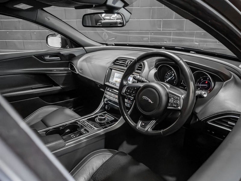 Check out this smart and aggressively styled Luxury sedan! This 2017 Jaguar XE R Sport looks Villainous in Black with Black full leather interior. Incredible economy on offer using only 6.6L/100km! This well spec'd example comes with features including Meridian premium sound system, Heated seats, Radar cruise control, Reverse camera and paddle sift controls. Power comes courtesy of a 2.0 turbo diesel offering 132Kw (178Hp) and 431Nm of Torque.