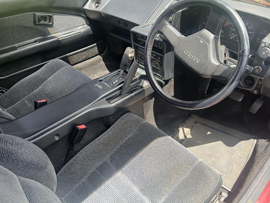 All in all the MR2 presents with a exceptionally tidy body structure (i.e no rust), paint work is too a good standard, potentially new owner may wish to repaint front bumper. Interior is original including working original stereo, all upholstery including roof linings is in good condition. Dashboard tidy with out any significant fading or damage.